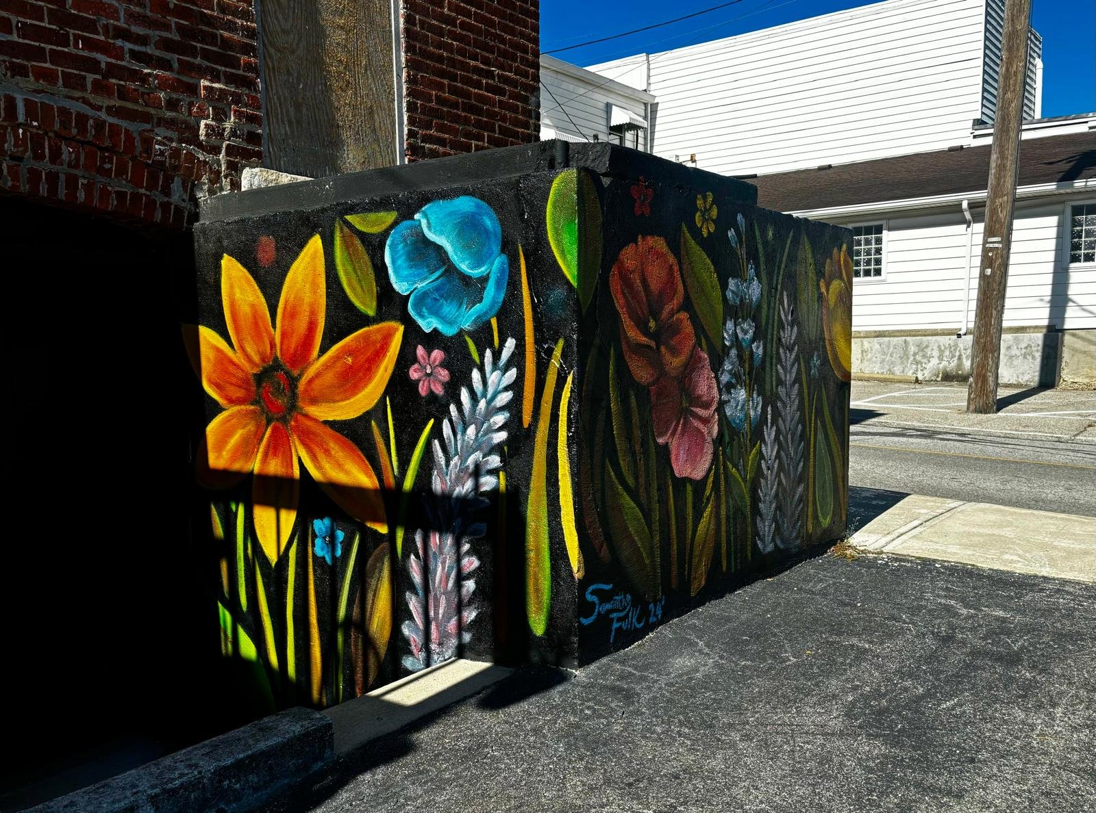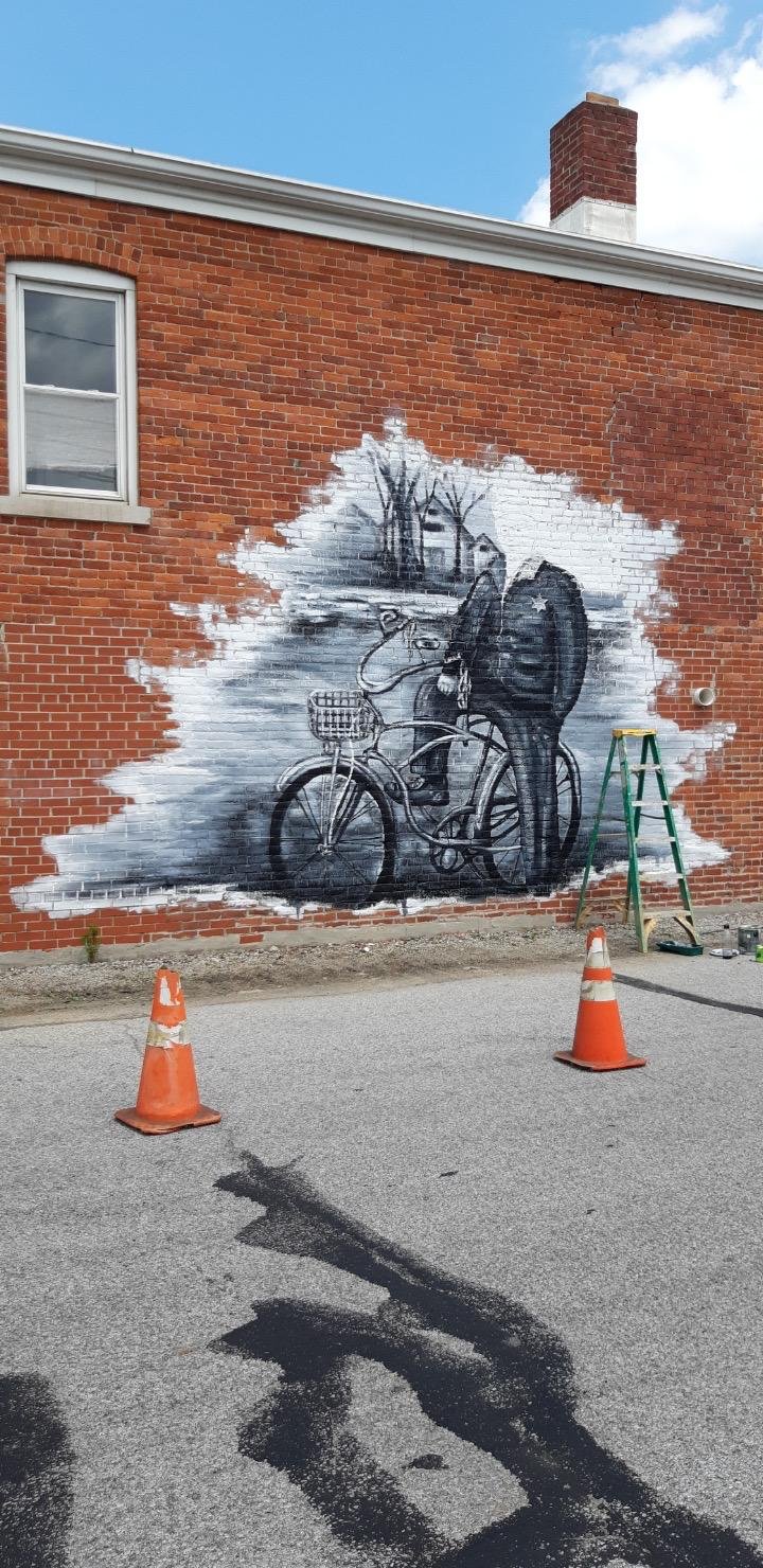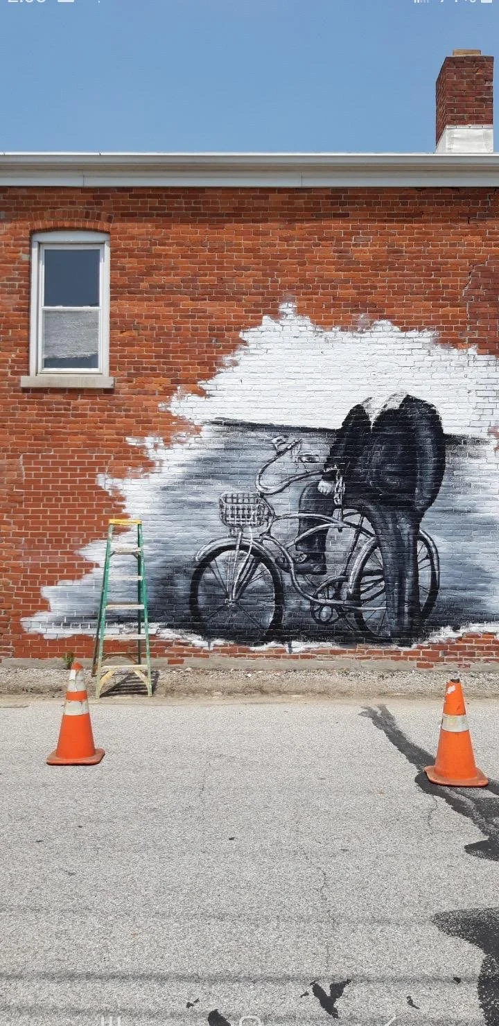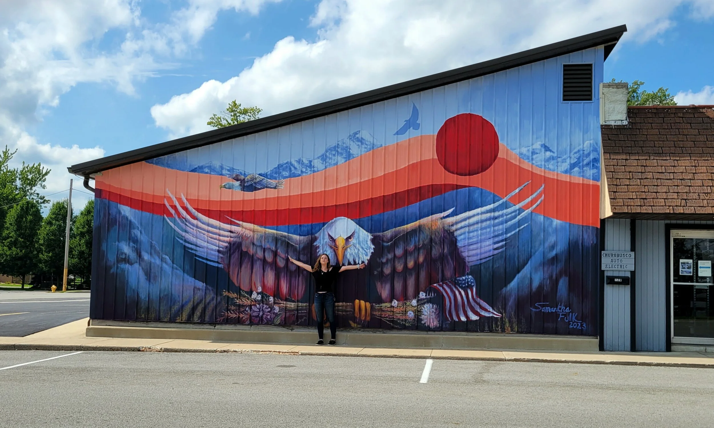 Located by Ranney's Body Shop in Churubusco, this piece was my first-ever commissioned mural. As a senior in high school, I interned for the Town of Churubusco as a Utility clerk. When they mentioned they wanted another town mural, I jumped on the chance to be the one to complete it. I had always loved to paint and wanted to expand my skills.
