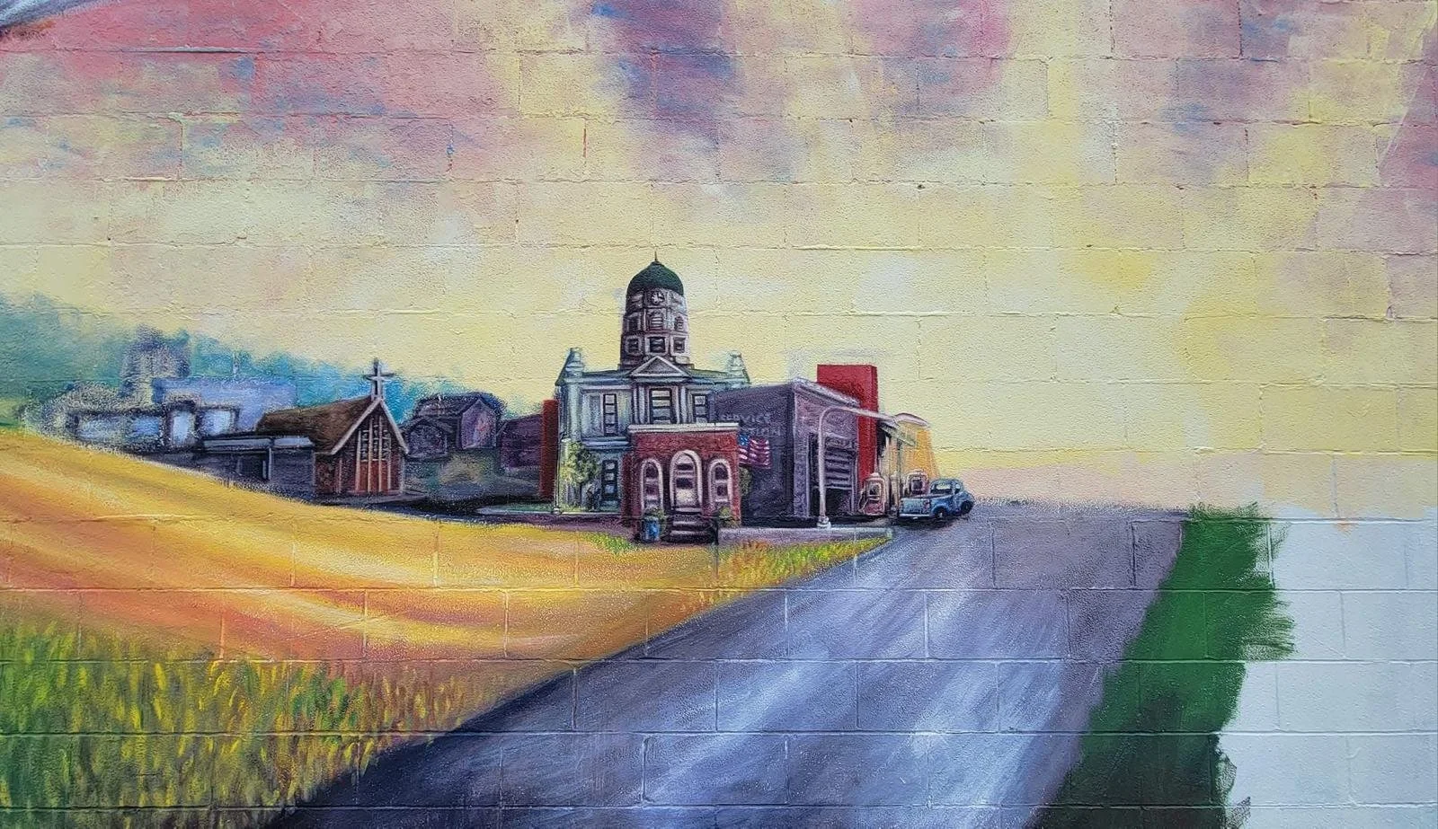 Located on the beloved Brevin's Downtown Eatery in Churubusco, this mural welcomes North bound traffic from Fort Wayne.