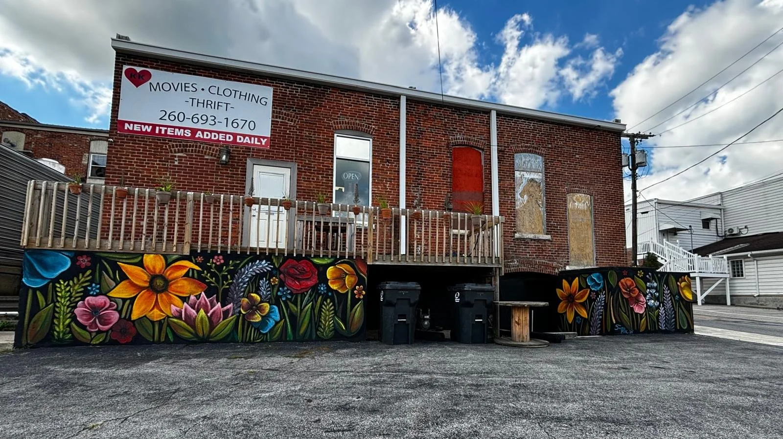 Commissioned by K&K in Churubusco, this mural brings life to the back parking lot of the building