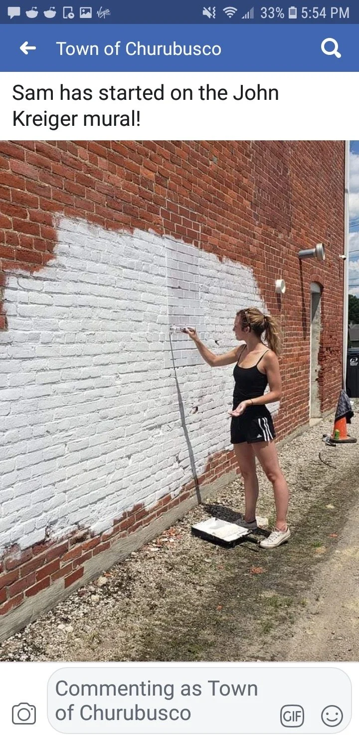 After completing my first mural for the town of Churubusco, I was commissioned again to paint a memorial portrait on the side of Churubusco Utilites (which used to be the old, brick fire station).