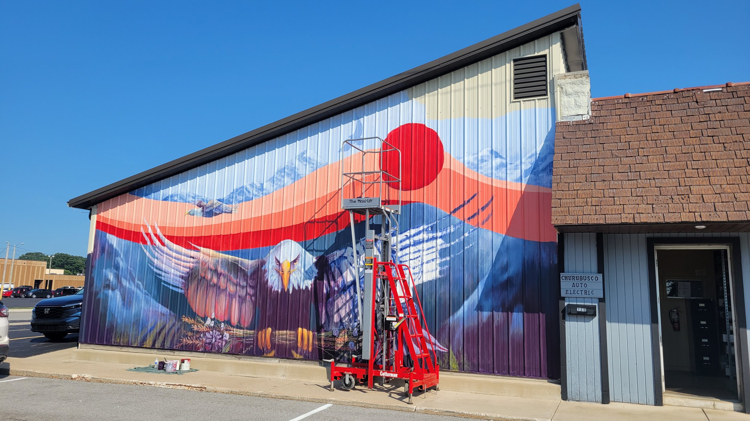 Located on the side of Auto Electric in Churubusco, this mural was commissioned by 2nd Floor Gallery & Studio and helped paid for by generous donations from 2nd Floor, Auto Electric, the Town of Churubusco, and many town residents.